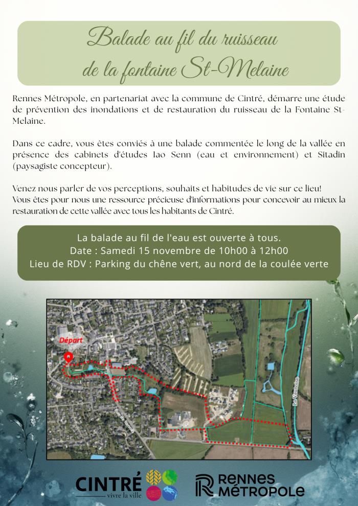 Rennes Métropole, en partenariat avec la commune de Cintré, démarre une étude de prévention des inondations et de restauration du ruisseau de la Fontaine St-Melaine.